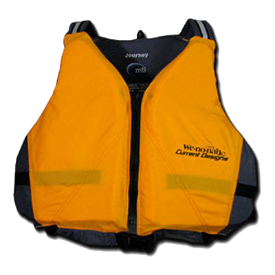 This Wenonah Canoe branded life jacket is the MTI Journey PFD. The Journey offers outstanding comfort with its complex contoured shaped foam panels. You can see the contour of the front panels when you hold it in your hands. They hug your chest better than your average PFD. Simple padded shoulder straps highlighted with reflective trim are slim and comfortable and have no buckles to fuss with. The open sides provide freedom of movement and cool venting. Front zip and belted waist with clip closure complete this straight forward yet immensely comfortable vest. USCG: Type III Buoyancy: 15 lbs. 5 oz Colors: Mango/Grey Size: 2XL/3XL (46”-56”)